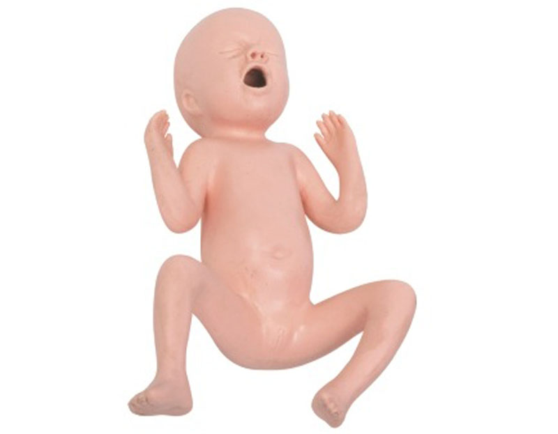 ■模型具有早产儿的生理特征,体重不足2.5kg,身长不足47cm,皮肤柔嫩,表皮菲薄可见血管,面部皮肤松弛,皱纹多,颈肌软弱,四肢肌张力低下,胎毛多,耳壳软,乳晕不清,足底纹少,男婴睾丸未降,女婴大阴唇不能盖住小阴唇。