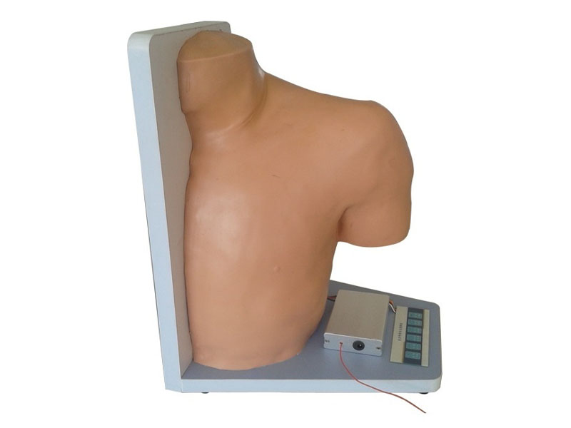 ■解剖结构标准,具有肩胛骨、锁骨、肱骨、三角肌、胧二头肌及肩关节重要的韧带,用于训练肩关节穿刺定位的触诊技术。 ■学习穿刺注射时病人的标准体位。 ■可从6个不同的部位进行穿刺注射:肩关节腔(前方入路)、肩关节腔(后方入路)、肩峰下滑囊、肩锁关节、肱二头肌长头的肌腱腱鞘、肩胛上神经阻滞。 ■电子指示灯设计,每个部位穿刺正确时,会有绿灯提示。 ■皮肤模拟真实,可更换。