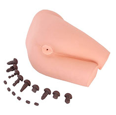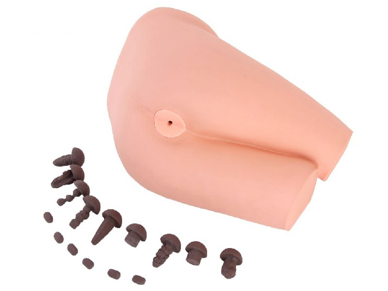 ■模型为成人臀部,质感真实。 ■采用进口热塑体混合胶材料,环保无污染,肤质仿真度高。 ■直肠检查体位:左侧卧位。 ■13种肠道疾病、9种类型模拟粪便供识别。 ■模拟粪便可方便的置于粪便固定器,进行练习与考核。
